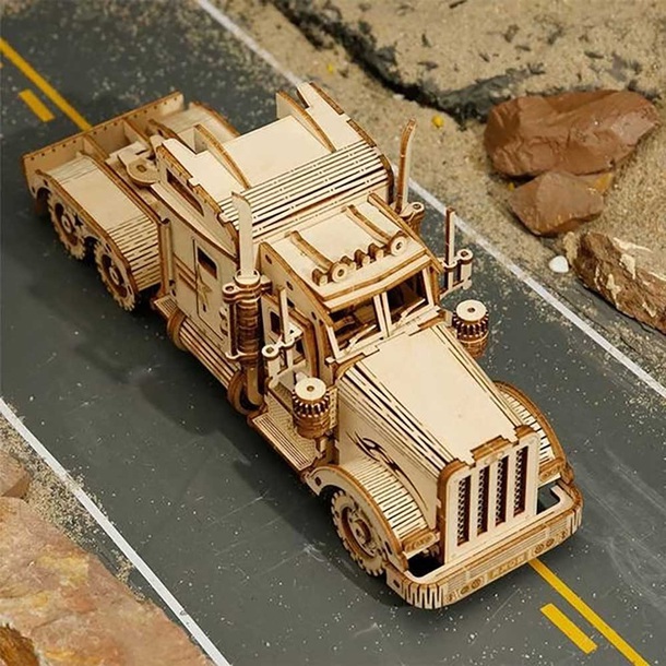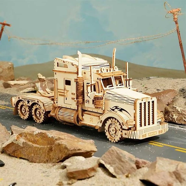 While the King of the Road Heavy Truck captures the raw power of an American highway icon with giant fenders, smoke-stack exhausts and commanding presence (286 pieces, Scale 1:15, 22.4x7.3x10cm).