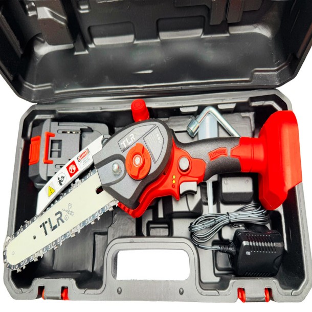 The chainsaw comes fully assembled in a fitted storage case with charger adaptor, battery, driver tool and chain-oil bottle.