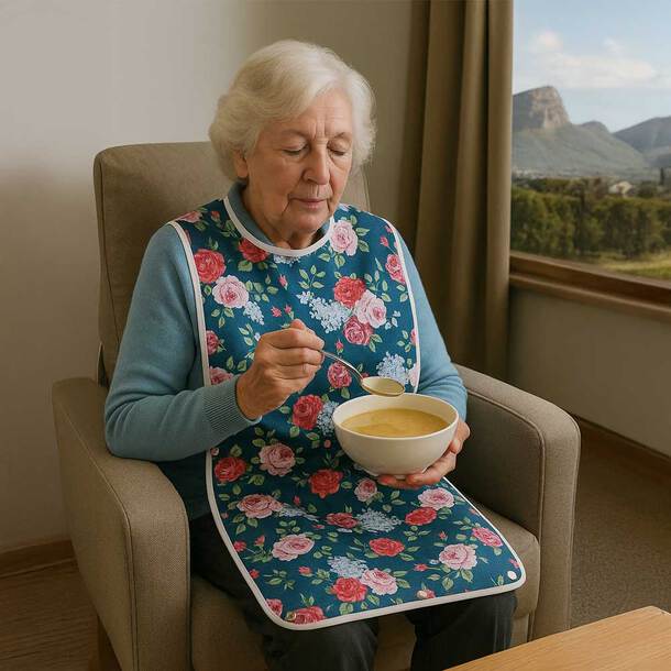 Made from hygienic, anti-bacterial polyester with a waterproof backing, it’s ideal for anyone with tremors, limited hand control, or recovering from surgery.