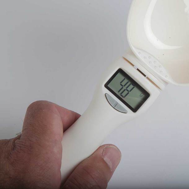 With just a touch of a button this handy measuring spoon allows you to easily measure dry ingredients (5g to 800g) in grams or ounces and liquids in cups or millilitres thanks to its practical scoop and built-in digital scale. Making it incredibly easy to precise when prepping your next meal. The SmartScoop Digital Measuring Spoon also features an easy-to-read LCD screen, which makes precision measurements even easier.
