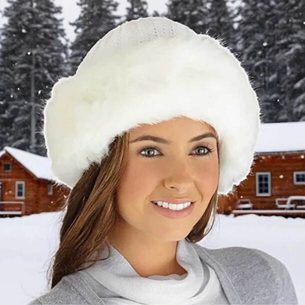 With a soft, ribbed knit crown and a luxuriously plush faux fur brim that helps shield your face from icy winds, this chic essential is perfect for cold-weather walks, après-ski outings, or simply adding elegance to your everyday wardrobe.