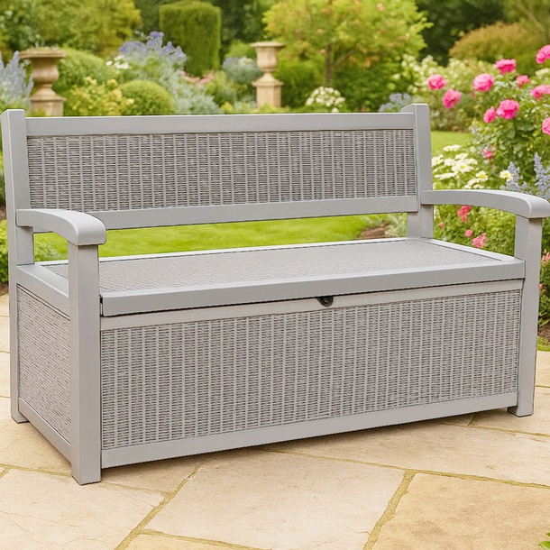 Tired of garden clutter? This beautifully designed Garden Storage Bench offers the perfect solution. With the appearance of elegant woven rattan and the durability of modern materials, it combines generous storage with a comfortable seating area. Whether it's tools, hosepipes, cushions or garden games, everything tucks neatly away - right beneath you.