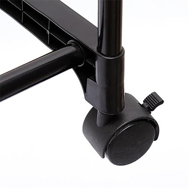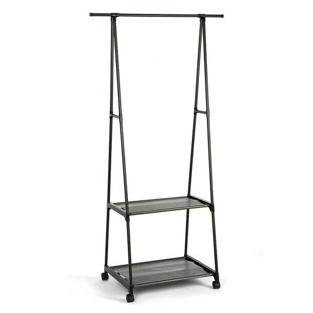 Mounted on four smooth-rolling castors, one lockable, the wide garment rail supports 5kg of hanging garments while each shelf holds up to 10kg.