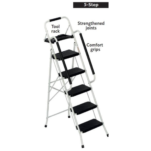 Strongly constructed in steel, it's complete with extra-deep 38x26cm (15x10in) steps with non-slip moulded rubber treads.