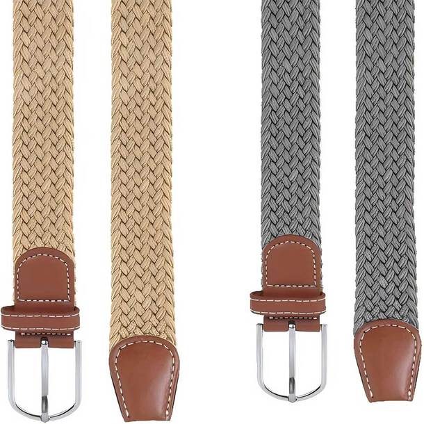 What's required is a belt that adjusts to your precise measurements – and here it is. Plait-woven from elasticated canvas, trimmed with faux leather and finished with smartly stylish buckles, they're so elastic that one size provides a 'made-to-measure' fit for waists measuring 31" to 43".