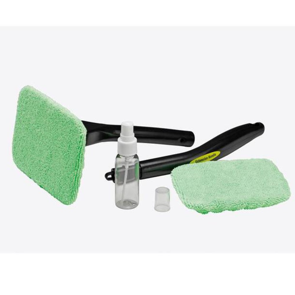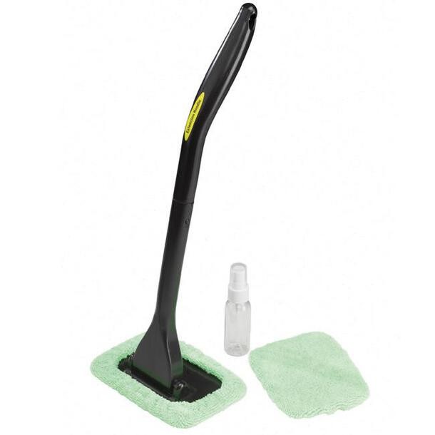 The washable Microfibre cloth in the windscreen cleaner works like a dirt magnet, cleaning using only water, so there's no need for expensive cleaners or other chemicals that leave smears or drip marks. Spray bottle included.